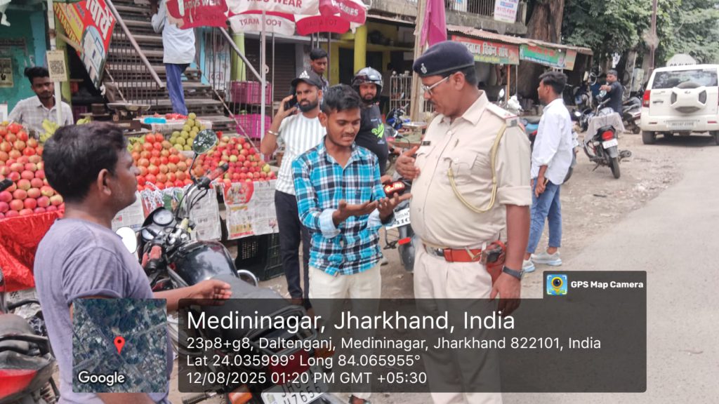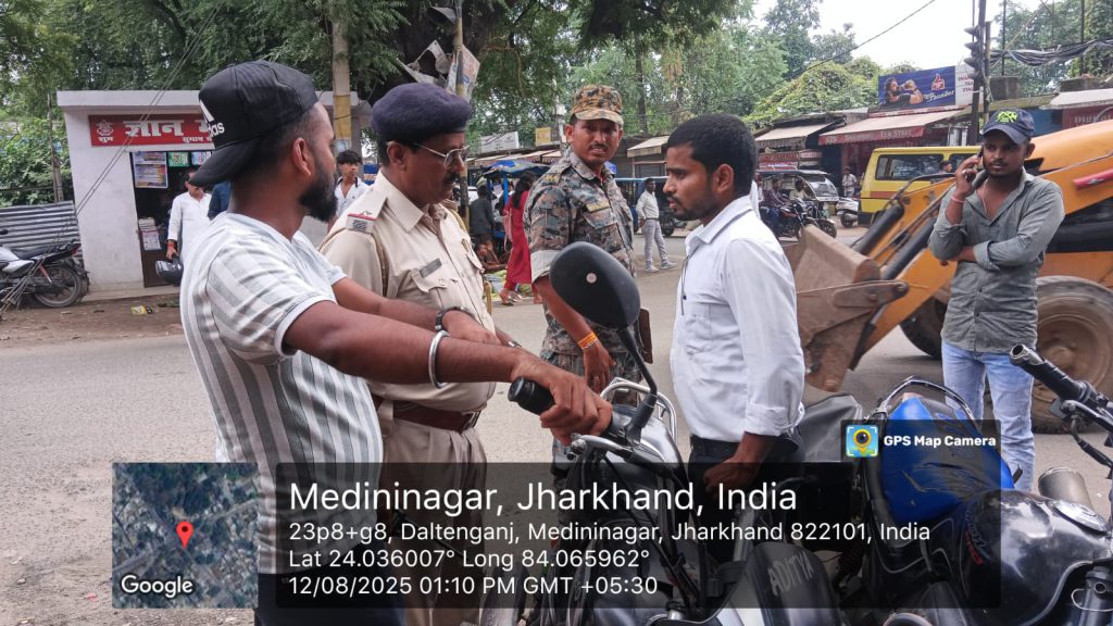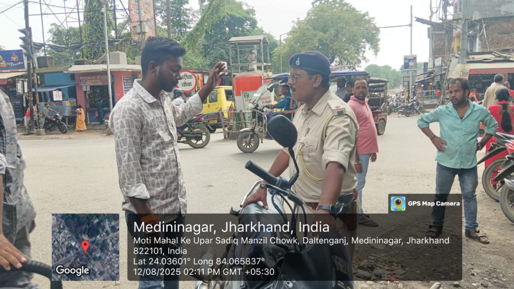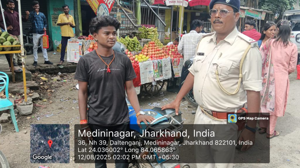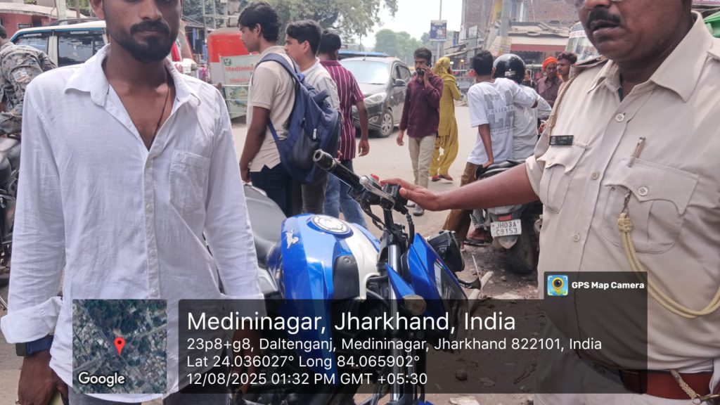 सच खबर, मेदिनीनगर। सादिक चौक पर यातायात पुलिस और जिला परिवहन विभाग की संयुक्त जांच में नियम तोड़ने वाले दोपहिया, चारपहिया और बस चालकों पर कड़ी कार्रवाई की गई। जांच के दौरान कई दोपहिया वाहन चालक बिना हेलमेट, बिना लाइसेंस और ट्रिपल लोड सवारी ले जाते पाए गए।