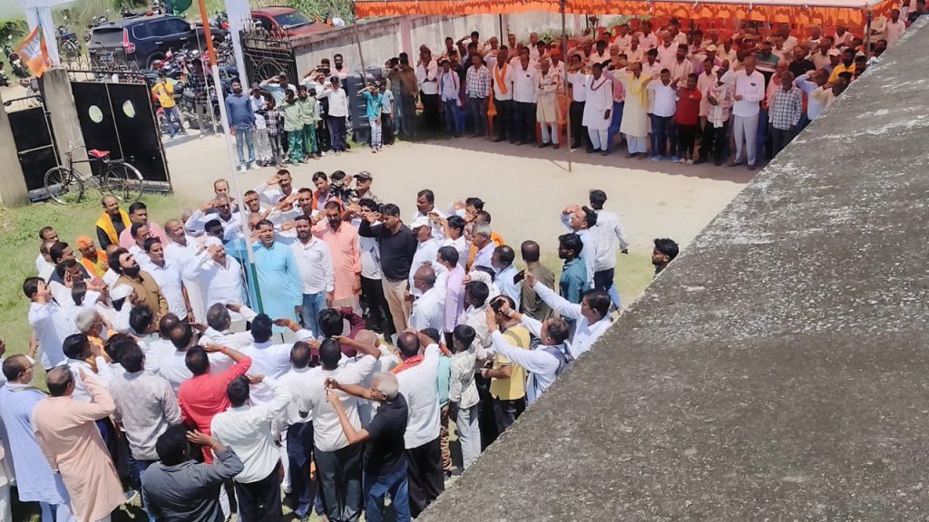 सच खबर, हुसैनाबाद। स्वतंत्रता दिवस के अवसर पर पूर्व मंत्री कमलेश कुमार सिंह के आवासीय कार्यालय में आयोजन किया गया। कार्यक्रम की शुरुआत ध्वजारोहण से हुई, जिसमें पूर्व मंत्री ने राष्ट्रीय ध्वज को सलामी दी। भाजपा कार्यकर्ताओं और पदाधिकारियों ने राष्ट्रगान गाकर देशभक्ति का माहौल बनाया। कार्यक्रम का संचालन योगेंद्र सिंह ने किया।