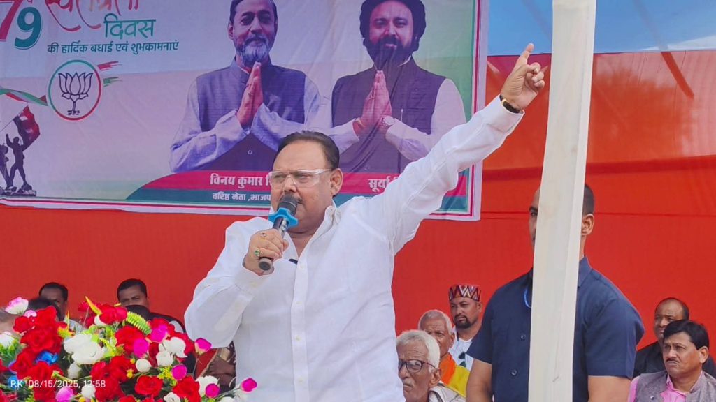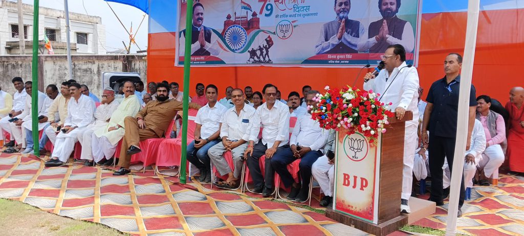 कार्यक्रम में भाजपा के वरिष्ठ नेता राम प्रवेश सिंह, सूर्य सोनल सिंह, जिला मंत्री सोमेश सिंह, सांसद प्रतिनिधि अखिलेश मेहता, अजित सिंह, विनय पासवान, संजय सिंह, बीरेंद्र सिंह सहित कई पदाधिकारियों ने सभा को संबोधित किया और स्वतंत्रता सेनानियों को श्रद्धांजलि अर्पित की।