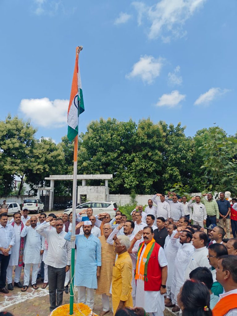 सच खबर, मेदिनीनगर। पलामू भाजपा जिला कार्यालय में स्वतंत्रता दिवस के अवसर पर ध्वजारोहण कार्यक्रम का आयोजन किया गया। जिलाध्यक्ष अमित तिवारी ने राष्ट्रीय ध्वज तिरंगा फहराकर उसे सलामी दी। उपस्थित सभी लोगों ने राष्ट्रीय गीत “जन-मन-गण” गाकर और ‘भारत माता की जय’, ‘वंदे मातरम’ के जयघोष के साथ उत्सव में भाग लिया।