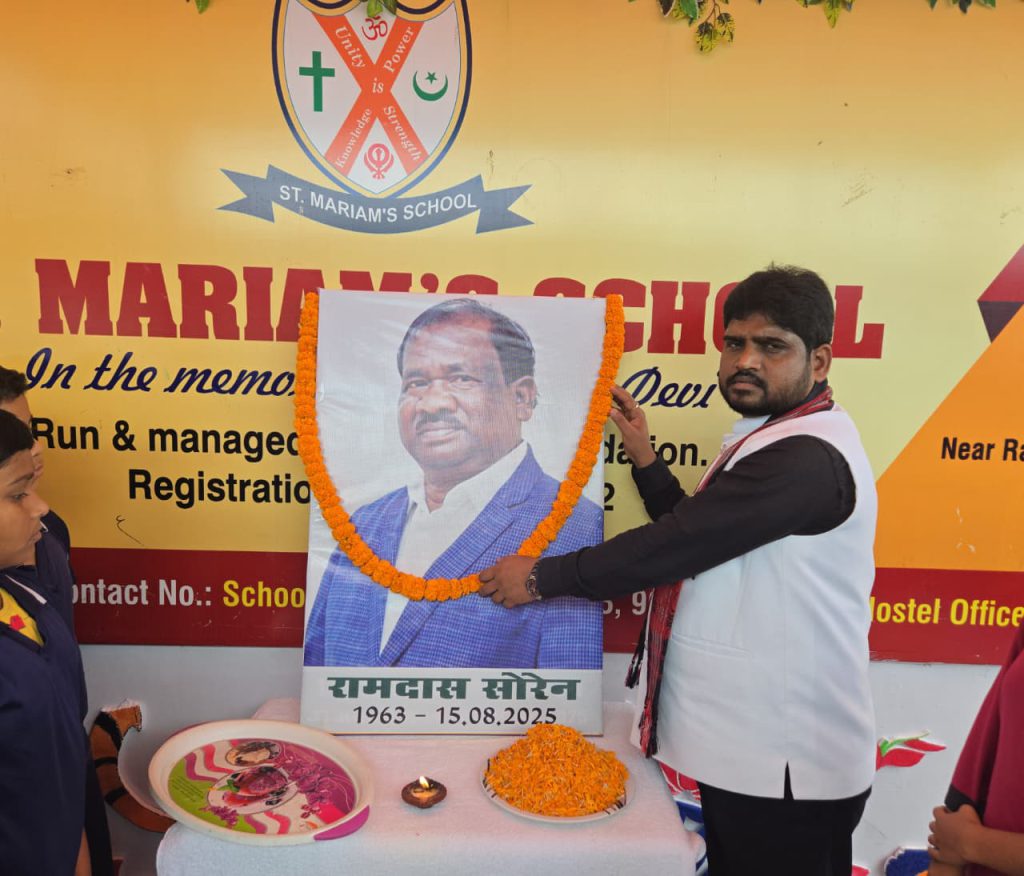 शिक्षा मंत्री और आदिवासी नेता रामदास सोरेन का 15 अगस्त को दिल्ली में निधन, संत मरियम स्कूल में आयोजित श्रद्धांजलि सभा